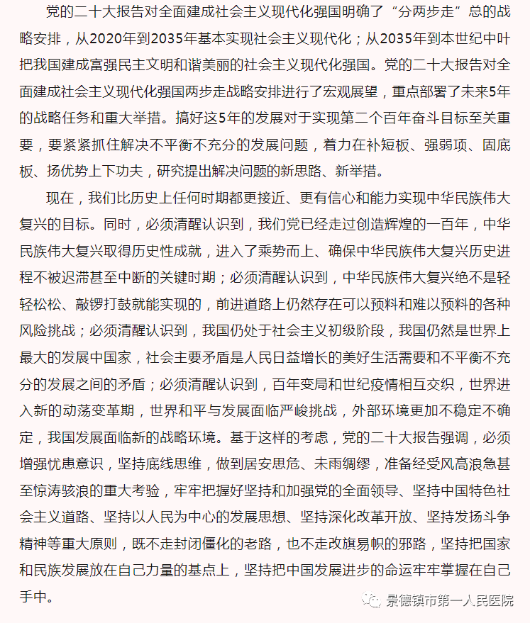 景德镇市第一人民医院开设学习专栏,带领大家一起深刻领会党的二十大精神的丰富内涵、精神实质和重大意义。