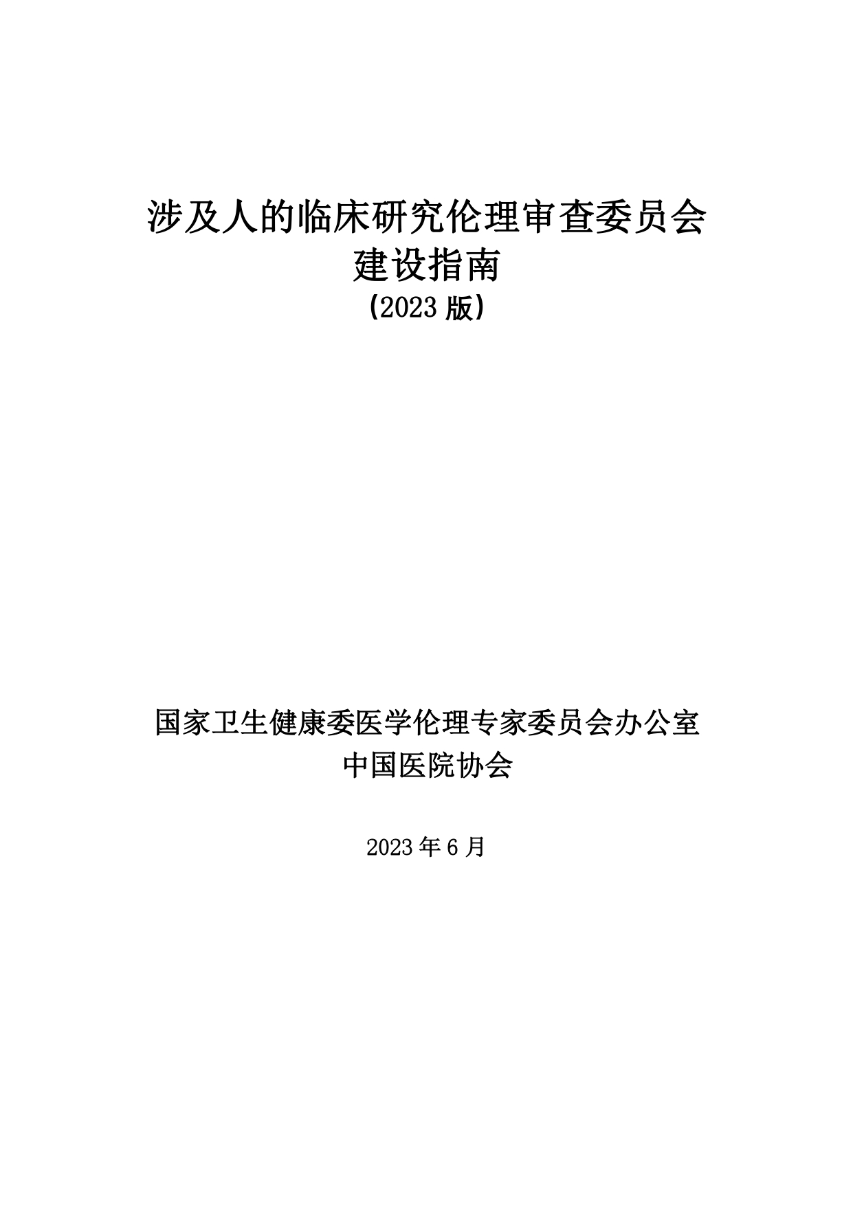 涉及人的临床研究伦理审查委员会建设指南 (2023 版)