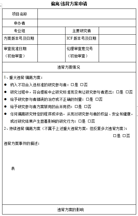 偏离/违背方案申请
