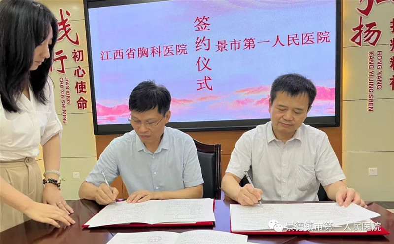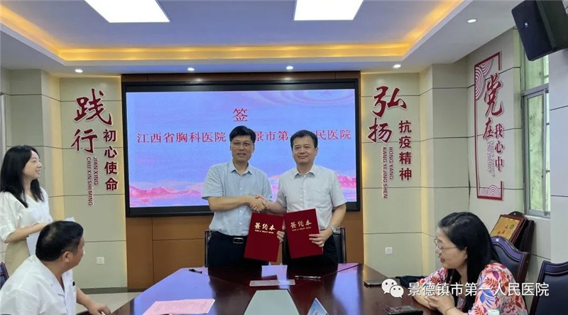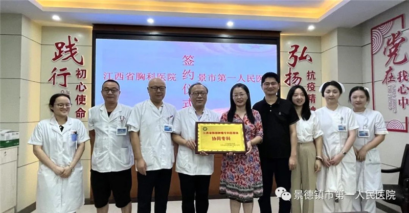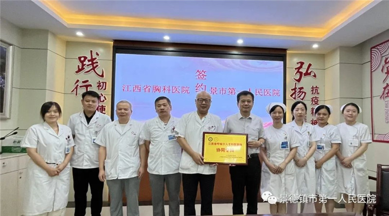 9月13日上午,江西省胸科医院党委副书记陈中书带领多名专家来到景德镇市第一人民医院进行交流指导,顺利签订了呼吸介入专科联盟体协议、肺部肿瘤专科联盟体协议,建立了江西省咯血急救联盟,并授予市一院呼吸内镜介入科为“江西省市共建学科”。
