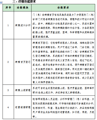 六、主要内容:门(急)诊病案首页采集管理系统项目院内询价,具体技术要求见附件,请列出功能或模块清单并附功能或模块简要说明。