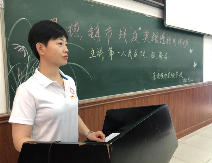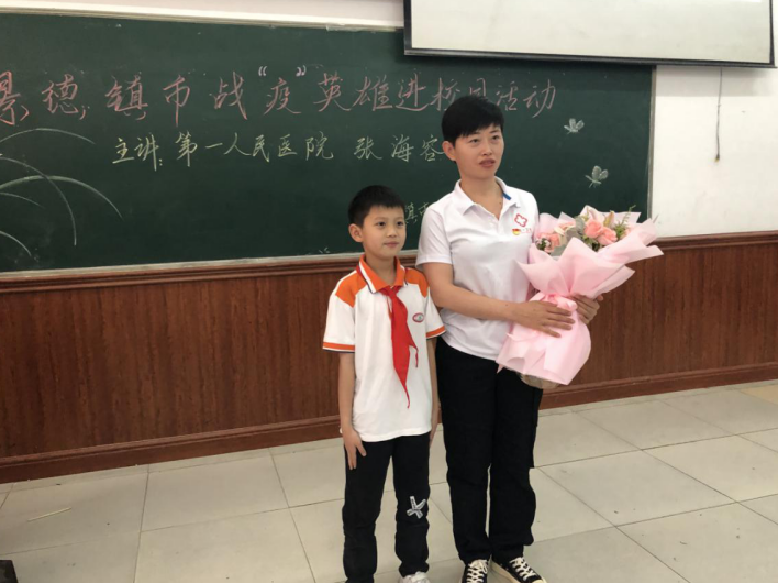 5月21日下午,景德镇市战疫英雄进校园活动(第三场)在市实验学校电教室举办,我院“战疫英雄”张海容为近百名小学生讲述抗疫英雄们支援湖北的故事,她的真情讲述,赢得了同学们的阵阵掌声。 活动中,张海容还与小学生们亲切互动,并现场指导小学生们练习六步洗手法及日常防护知识。 据了解,此次活动由市委宣传部、市卫生健康委、市教育局主办,旨在积极发挥战“疫”英雄的榜样示范作用,在广大学生群体中厚植爱国主义情怀。