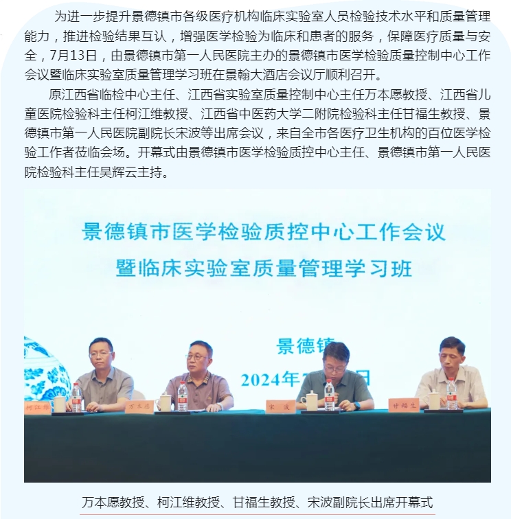 景德镇市医学检验质量控制中心工作会议暨临床实验室质量管理学习班圆满举行