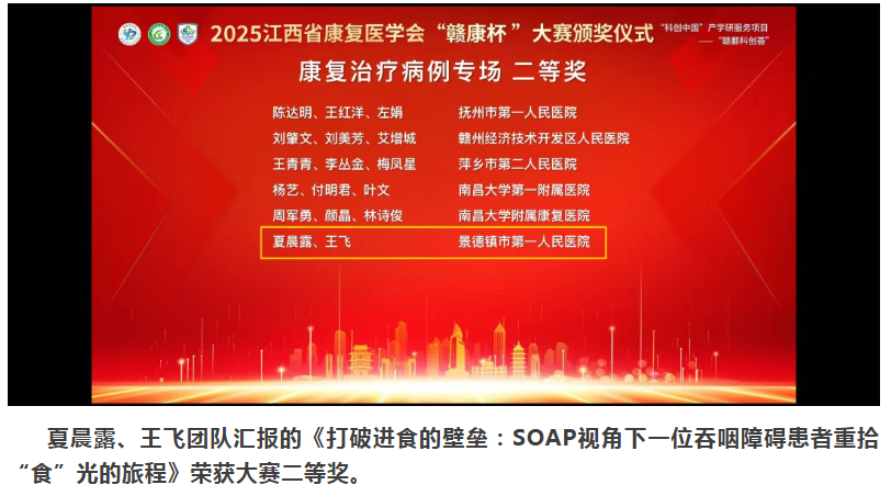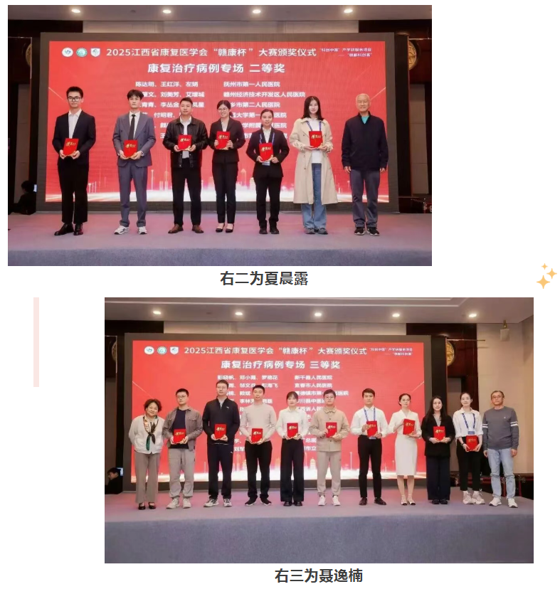 近日,2025年江西省康复医学会学术年会暨赣鄱国际康复论坛在南昌顺利召开。景德镇市第一人民医院康复医学科主任夏继强率领科室5名技术骨干参会,并组成三支参赛队伍参与同期举办的江西省康复医学会“赣康杯”康复病例汇报大赛。