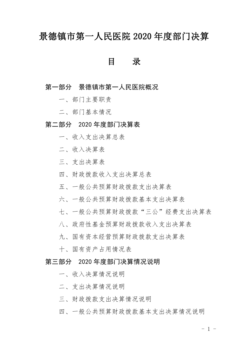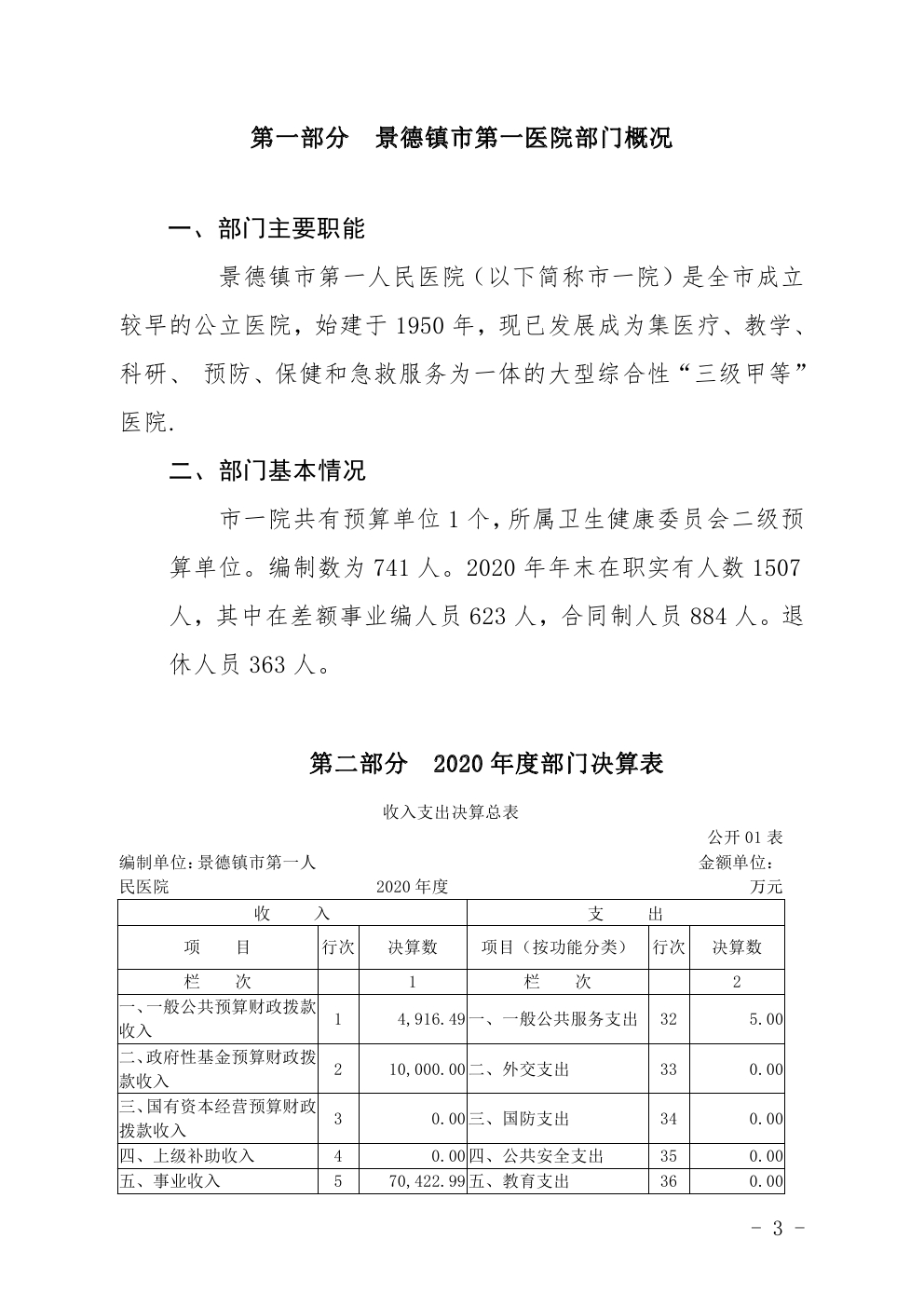 景德镇市第一人民医院2020年度部门决算