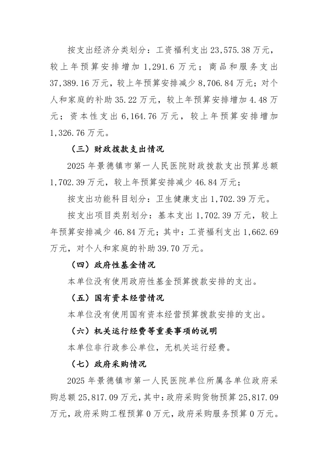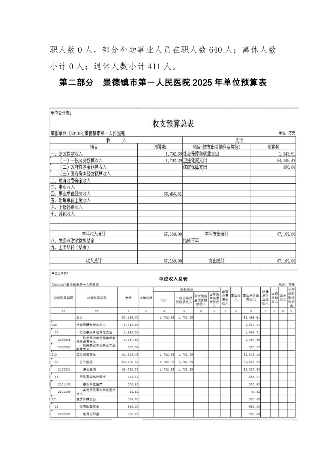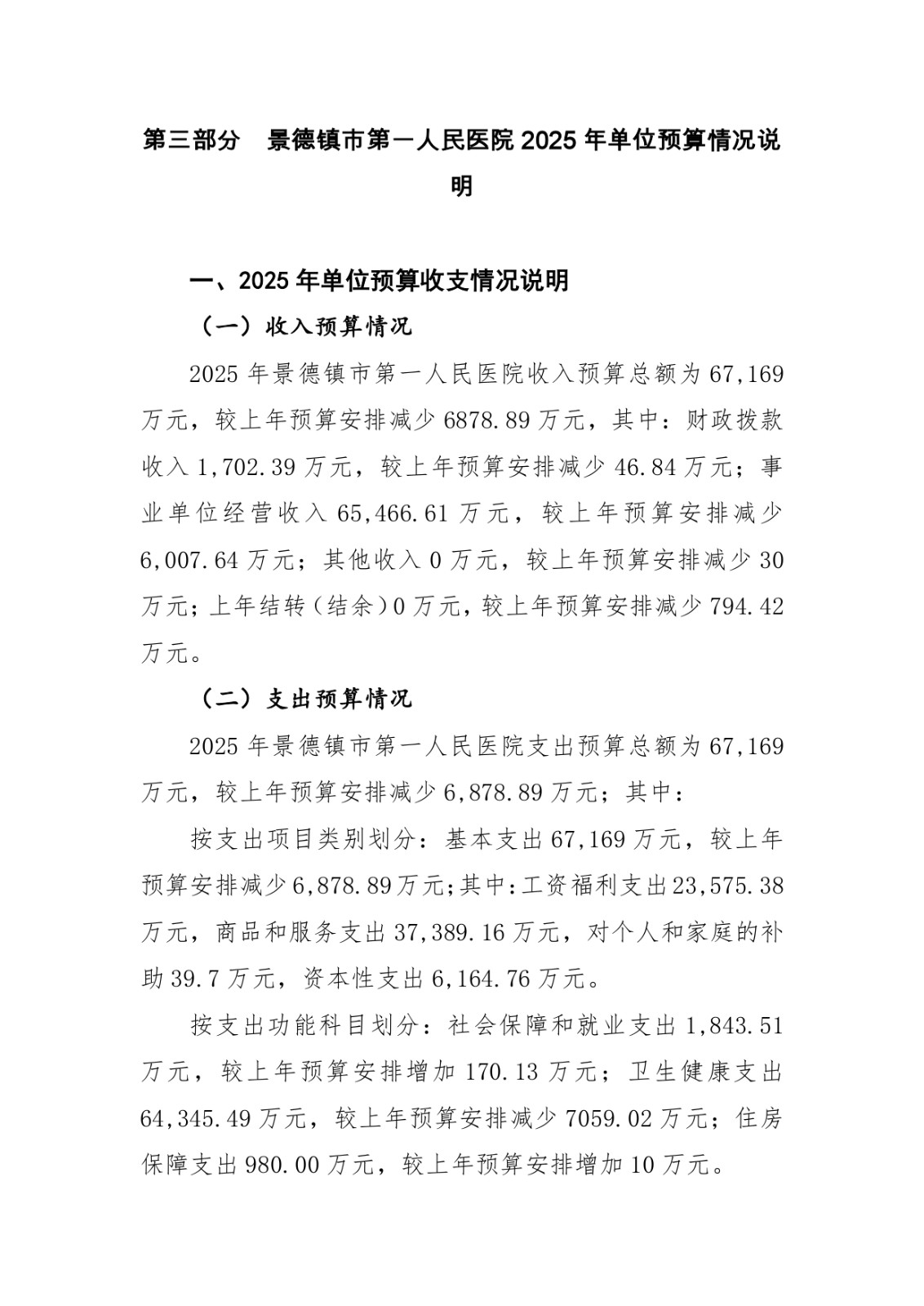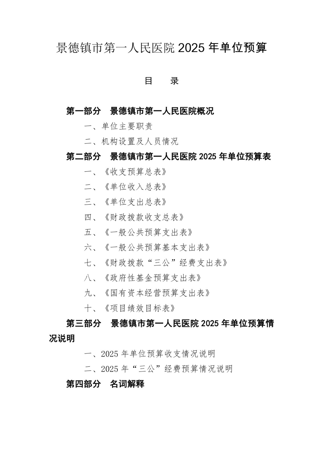 景德镇市第一人民医院2025年单位预算
