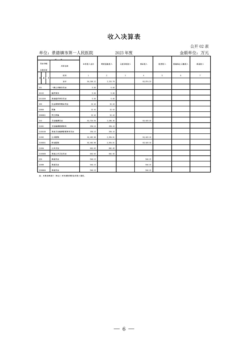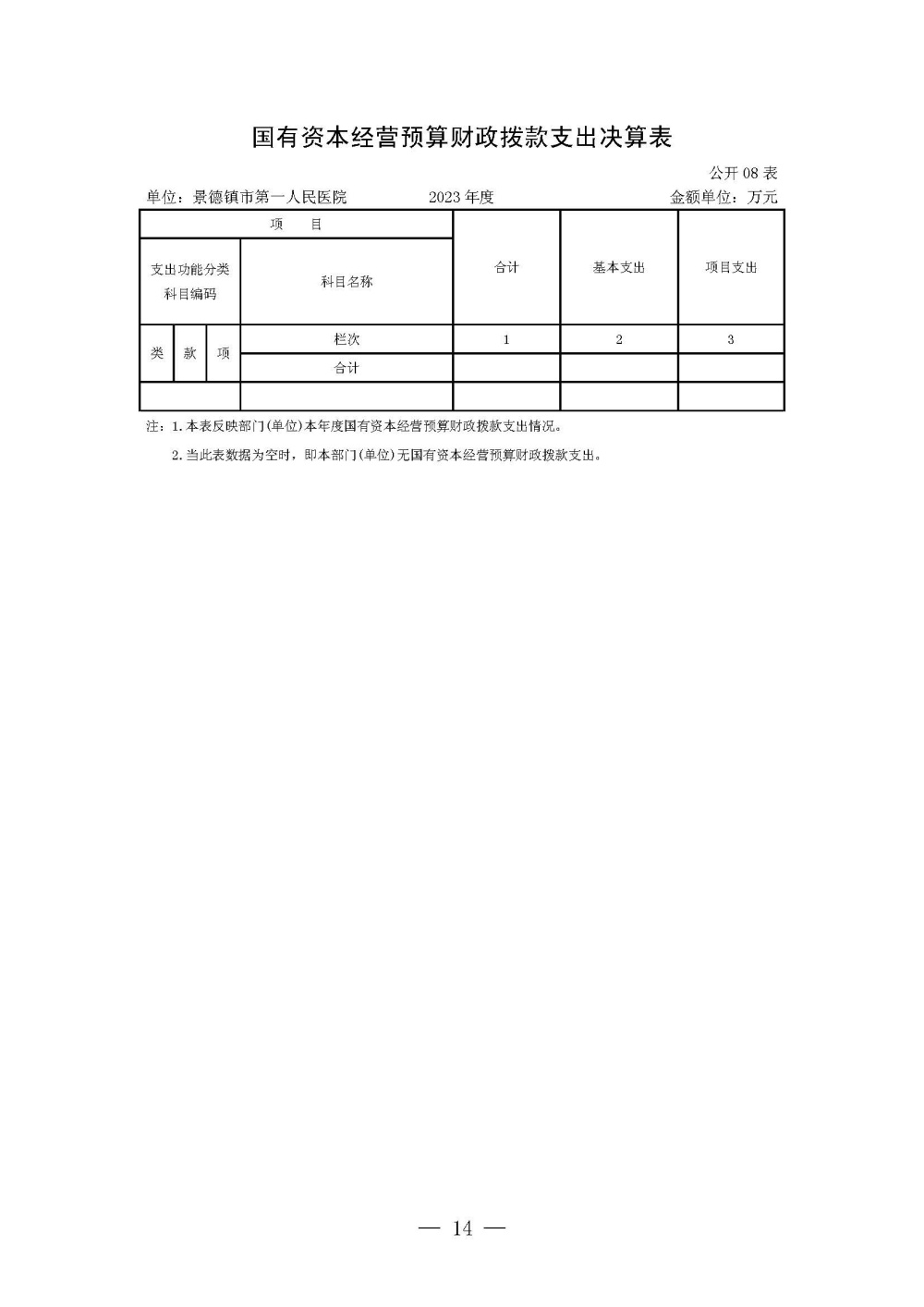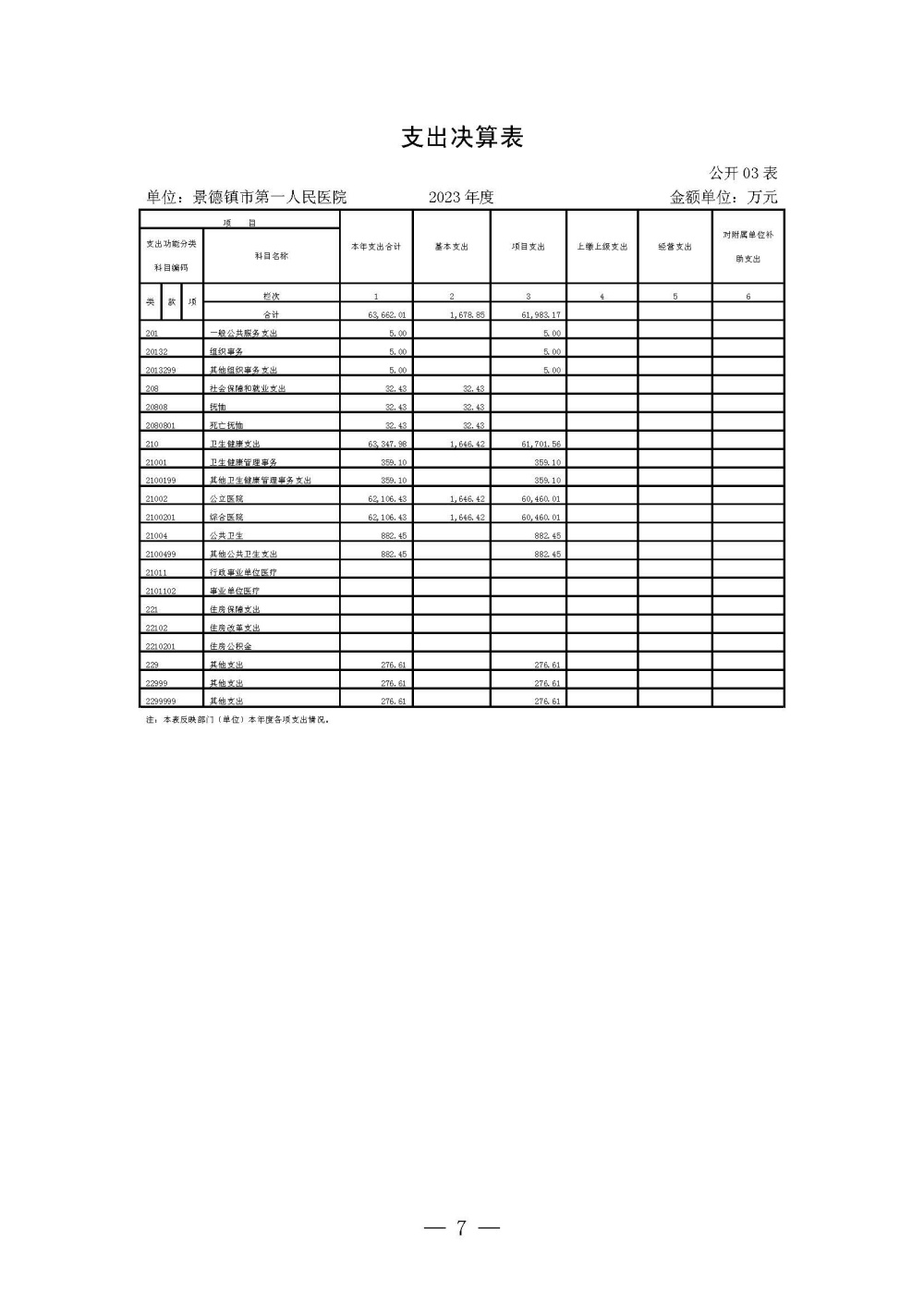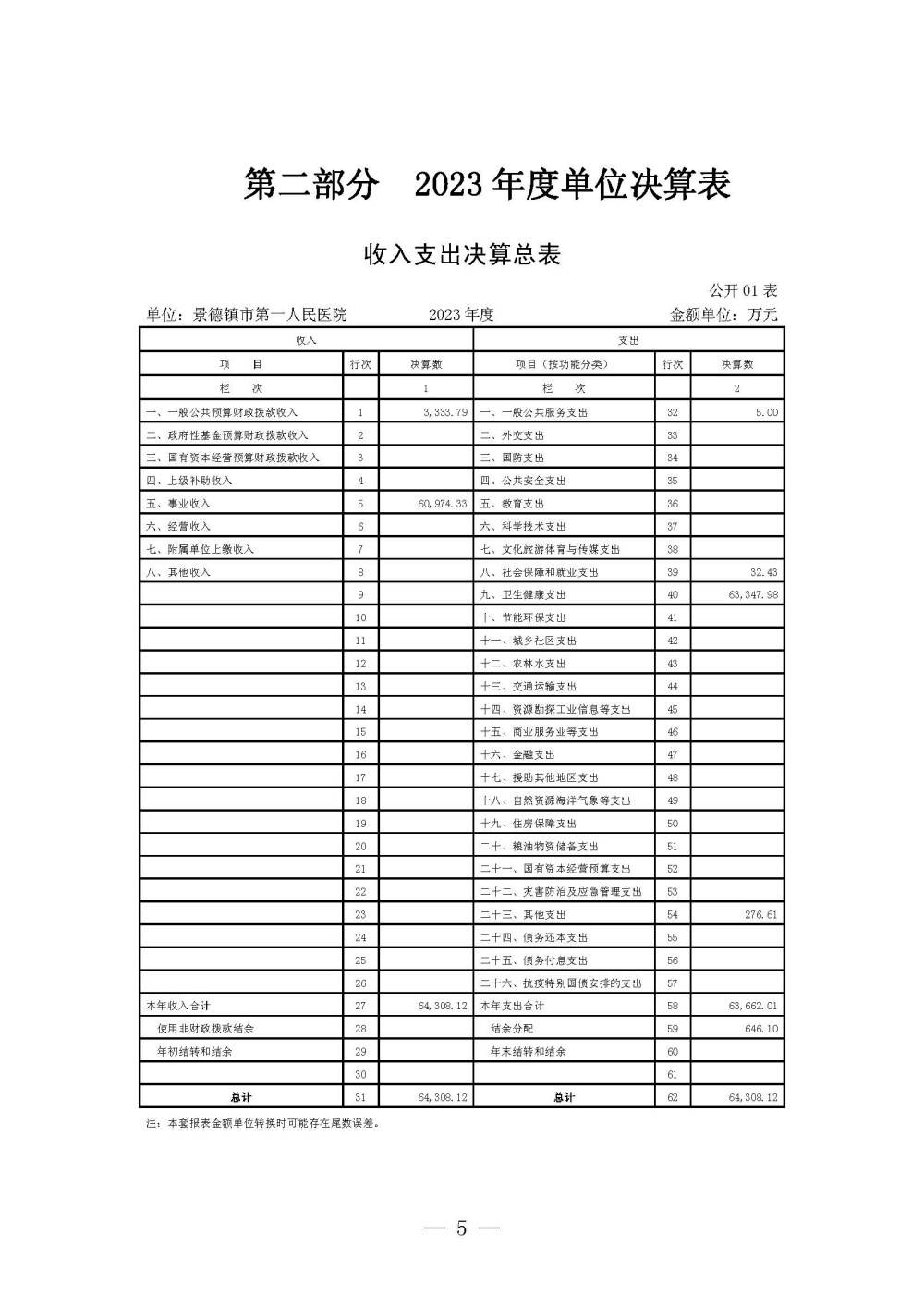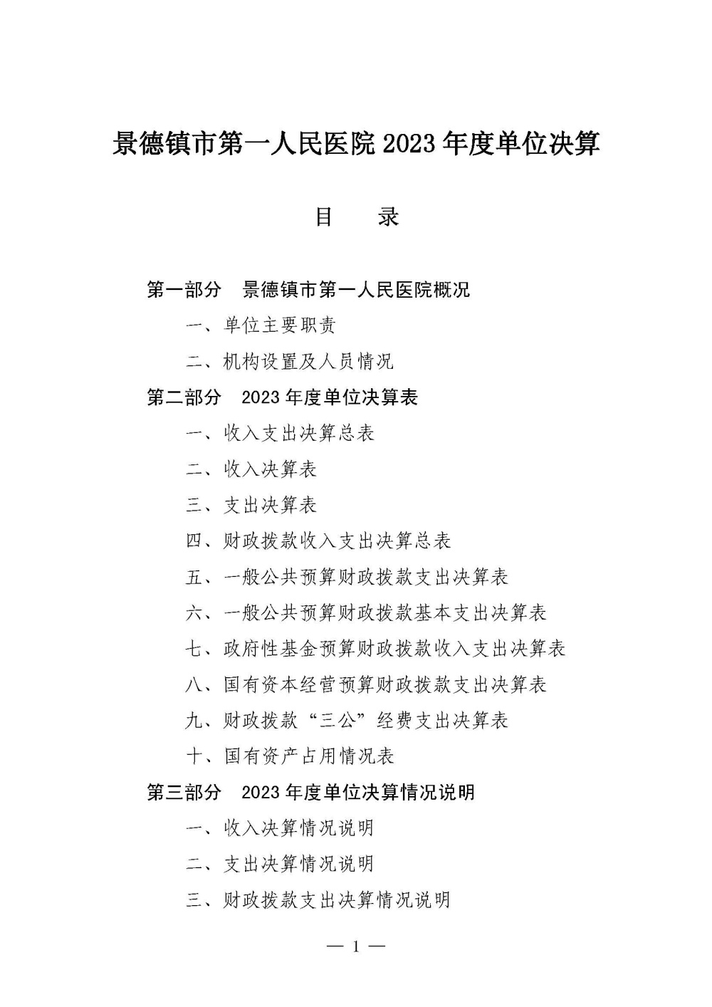景德镇市第一人民医院2023年度单位决算