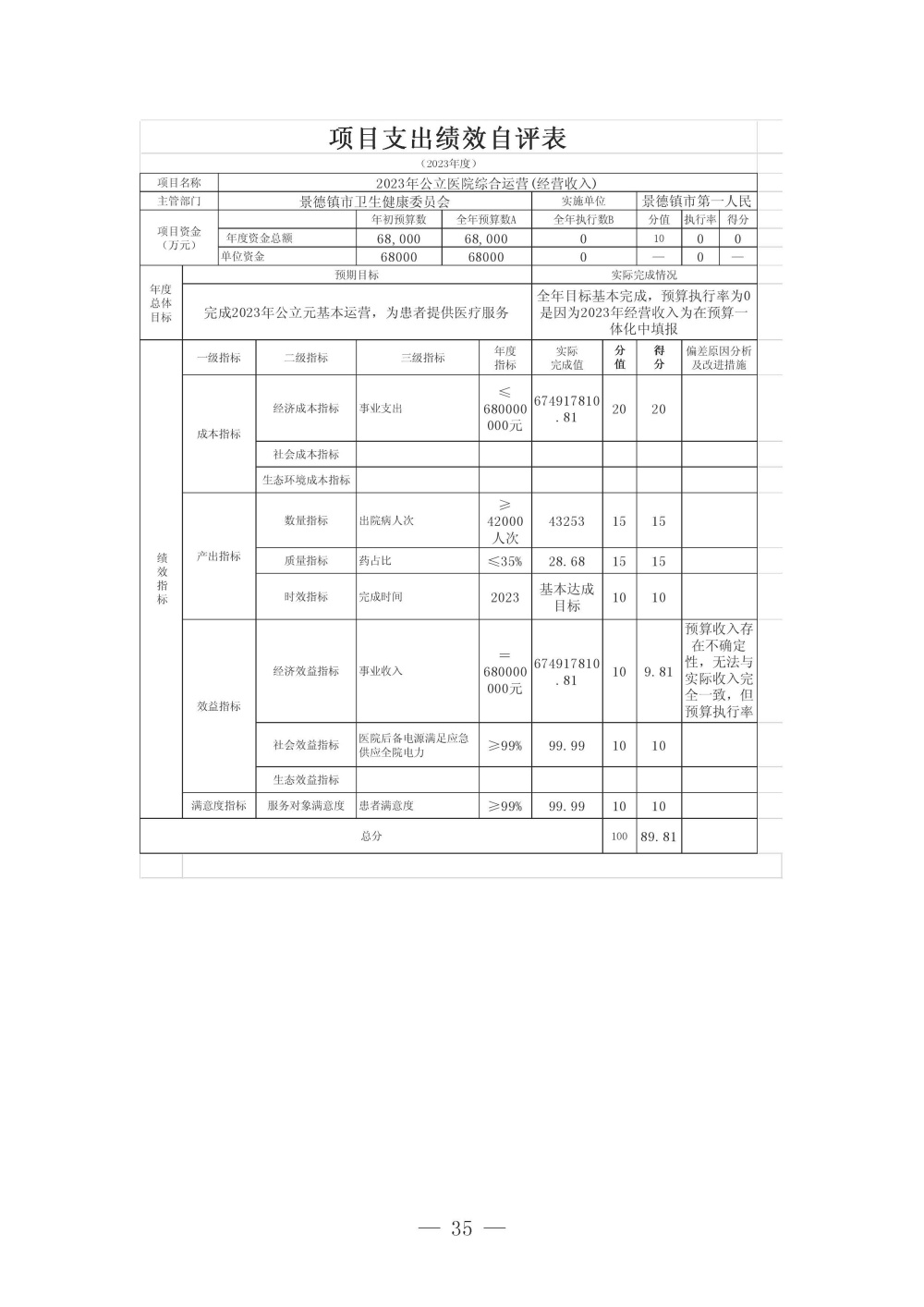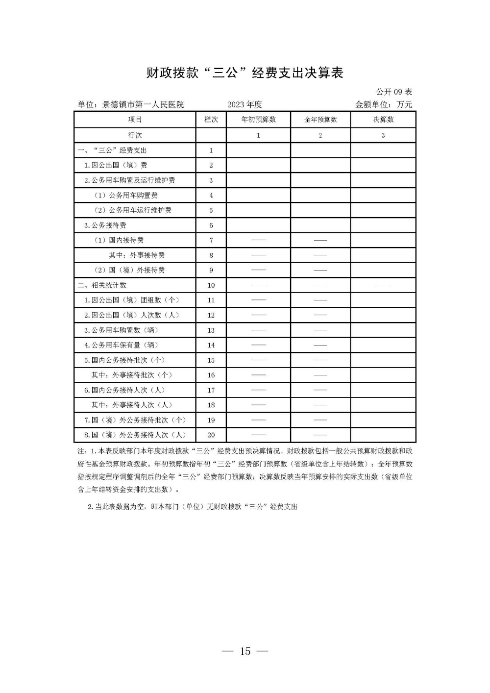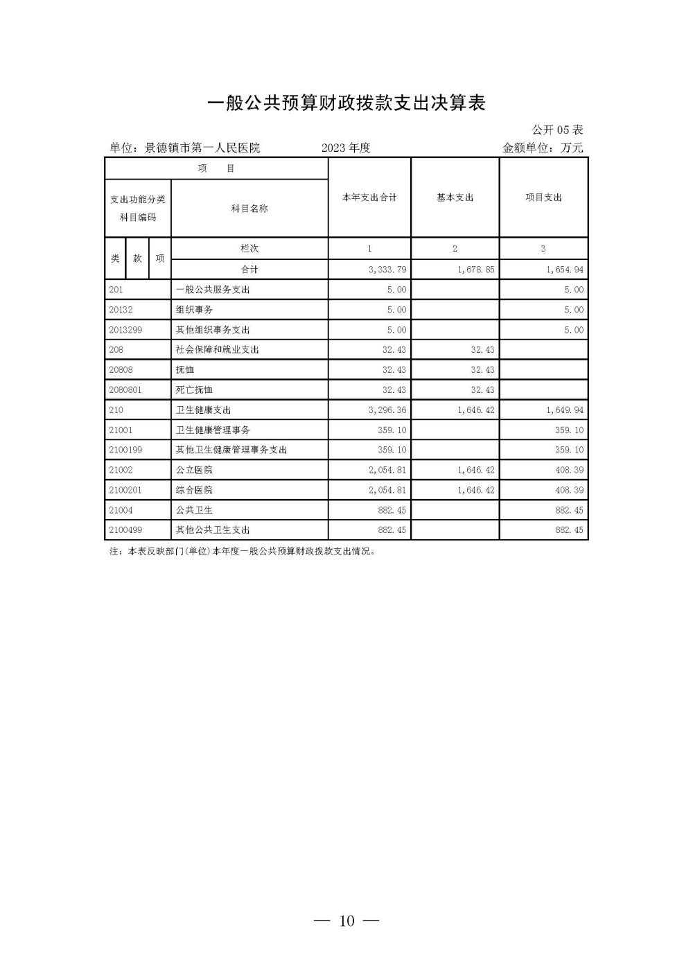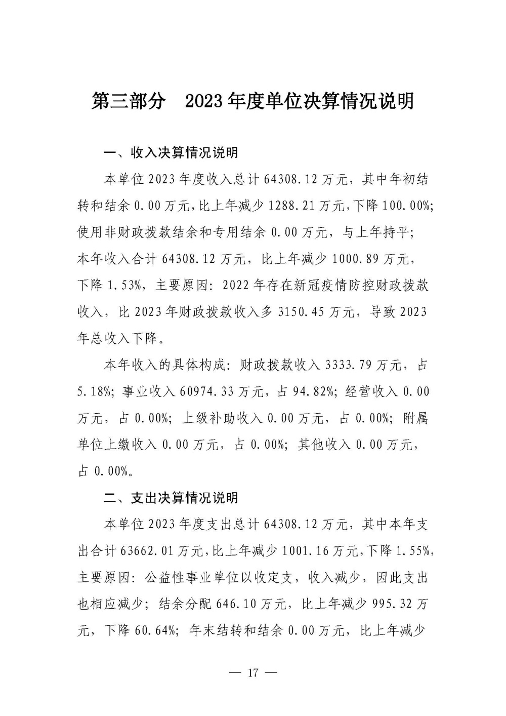 景德镇市第一人民医院2023年度单位决算