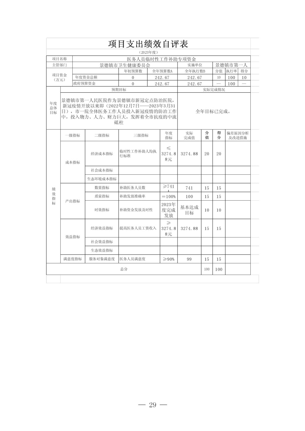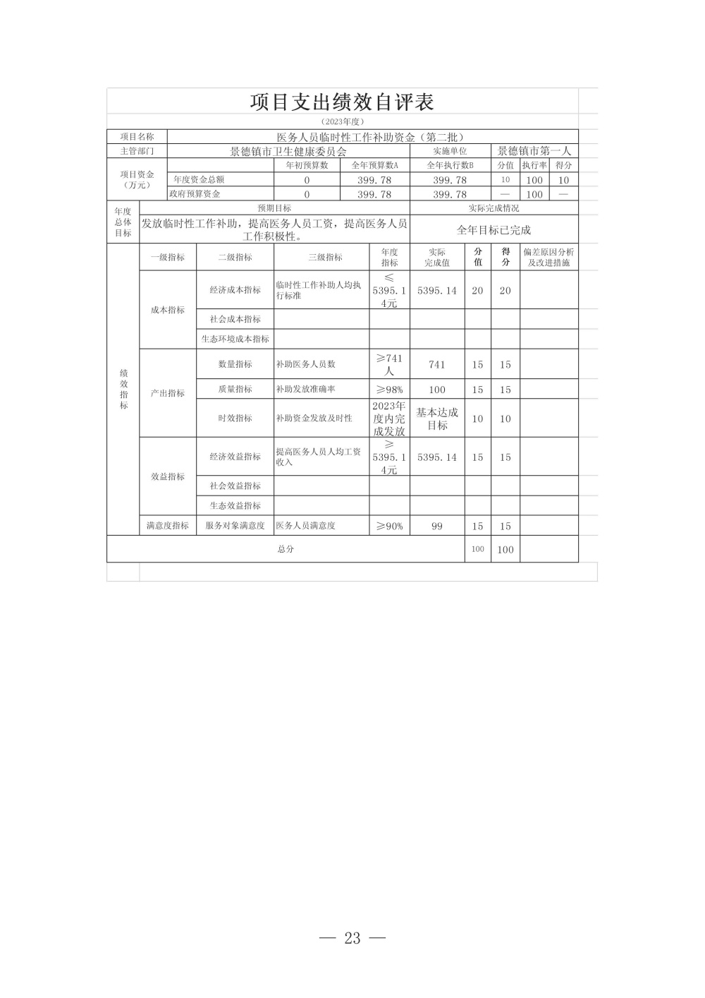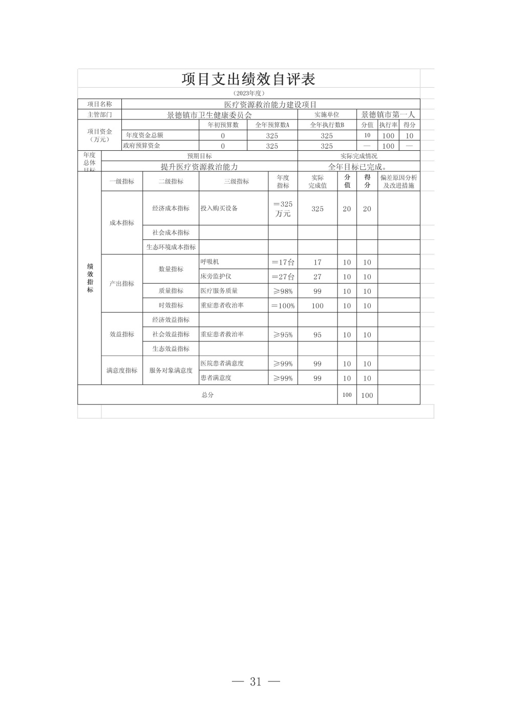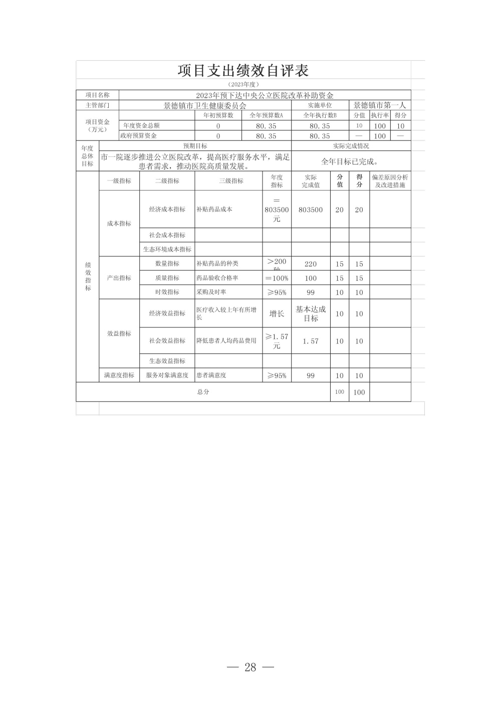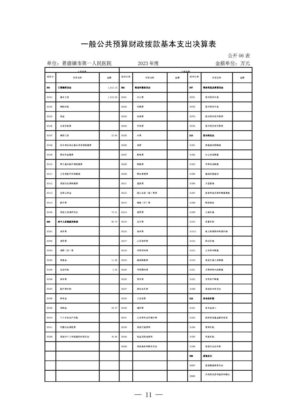 景德镇市第一人民医院2023年度单位决算