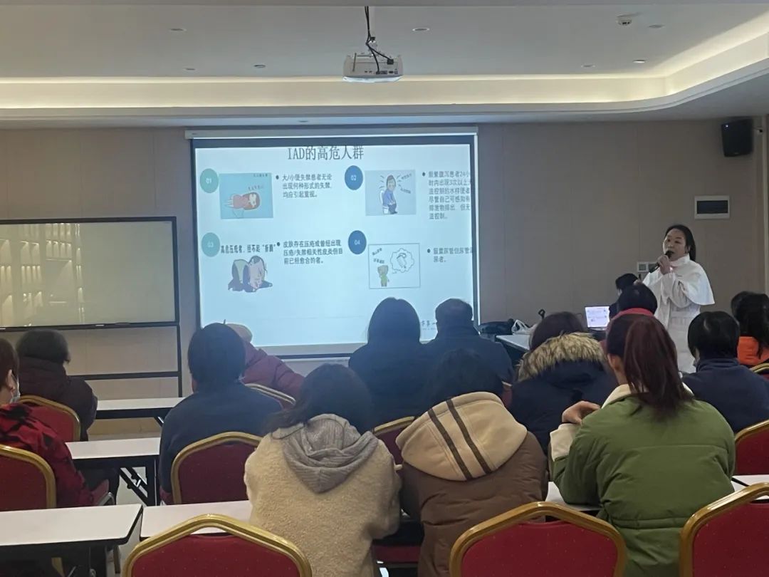 伤口造口专科护士以“失禁相关性皮炎及压力性损伤的预防”为主题开展了健康知识讲座,通过互动答疑的形式,为敬老院的护理员讲授了失禁以及压力性损伤的预防护理知识,并留下联系方式以便及时帮助指导她们对老人患者伤口进行照护。随后还现场为老人进行伤口护理服务。